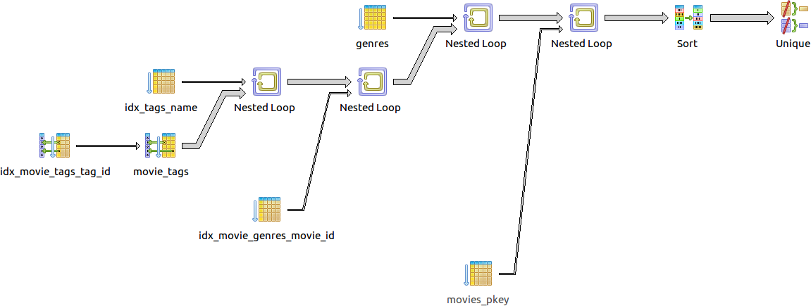 -> Index Scan using idx_movie_genres_movie_id on movie_genres gm (cost=0.29..0.33 rows=2 width=8)