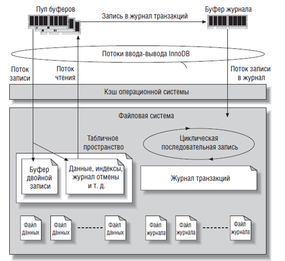 В MySQL хранилище и лог транзакций существуют за пределами "движка" СУБД.